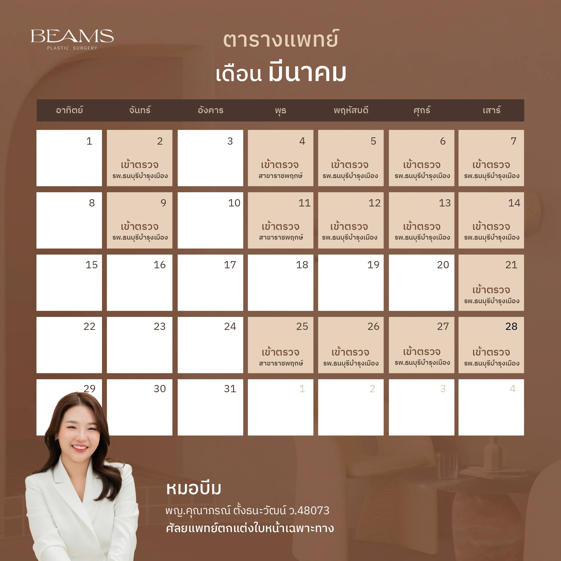 1. พญ.คุณาภรณ์ ตั้งธนะวัฒน์ (หมอบีม) ว.48073 ศัลยแพทย์ตกแต่งใบหน้าเฉพาะทาง
