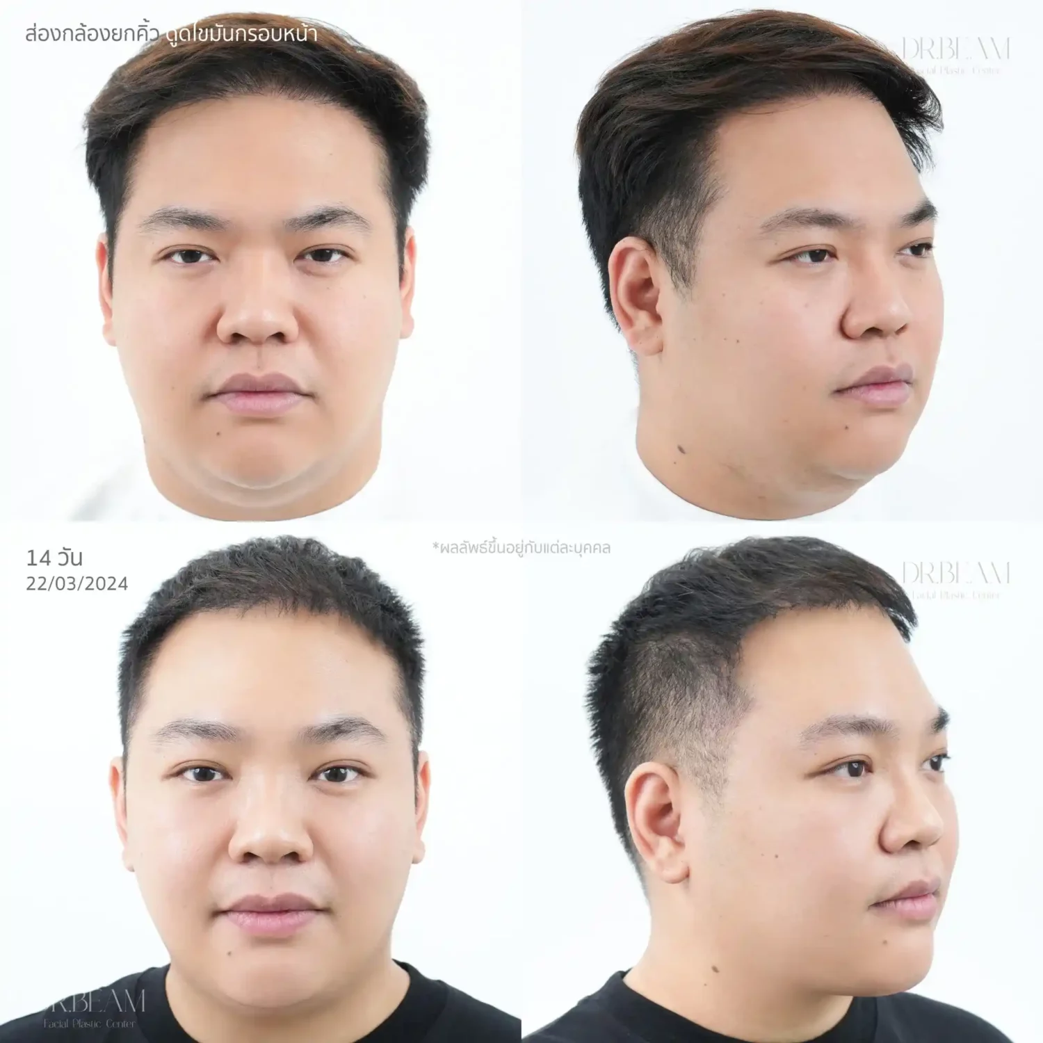 • หัตถการ : Endo-brow lift (ส่องกล้องยกคิ้ว) , ร่วมกับ การส่องกล้องร้อยไหม และดูดไขมันส่วนเกินบริเวณกรอบหน้า
