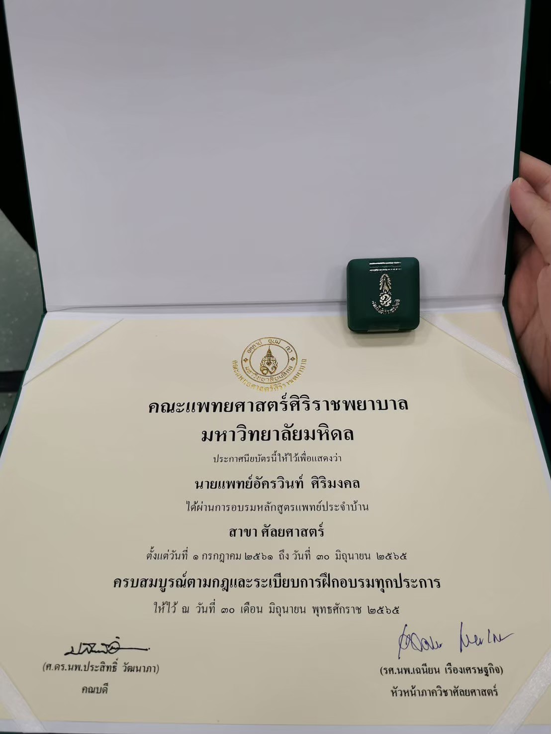 - วุฒิบัตรแพทย์เฉพาะทาง ด้านศัลยกรรม คณะแพทยศาสตร์ ศิริราชพยาบาล