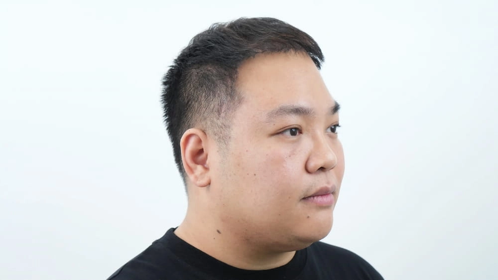 คุณตี๋ตัดสินใจเข้ามาปรึกษาคุณหมอพจน์เพื่อแก้ไขปัญหาคิ้วตก หนังตาตก มีร่องขมวดคิ้ว และริ้วรอยบริเวณหน้าผาก หลังจากที่คุณหมอพจน์ได้พูดคุยและวางแผนร่วมกันกับคุณไข้ คุณหมอจึงเลือกทำหัตถการยกคิ้วส่องกล้อง (Endoscopic Brow Lift) ร่วมกับการส่องกล้องร้อยไหมเพื่อแก้ไขความหย่อนคล้อยของใบหน้าส่วนกลาง รวมถึงการดูดไขมันกรอบหน้าเพื่อให้กรอบหน้าชัดขึ้น โดยตำแหน่งแผลของการยกกระชับใบหน้าคุณตี๋ครั้งนี้ จะซ่อนแผลตามไรผมด้วยเทคนิค Invisible Lock